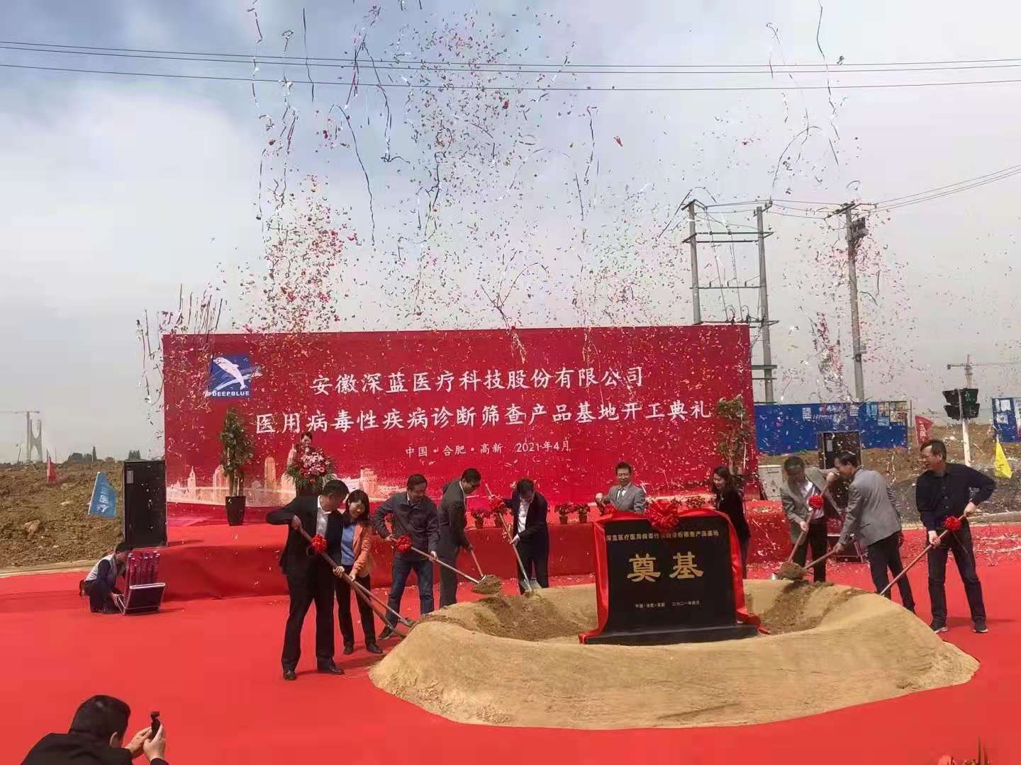鑼鼓喧天,禮炮齊鳴,培土禮成!4月18日上午,深藍(lán)醫(yī)療病毒性疾病診斷篩查類產(chǎn)品基地項目在合肥市高新區(qū)舉行了隆重的開工奠基儀式,合肥高新區(qū)黨工委委員、管委會副主任劉登銀、合肥高新區(qū)投資促進(jìn)局局長徐斌、合肥高新區(qū)建設(shè)發(fā)展局局長劉群及各有關(guān)部門的負(fù)責(zé)同志出席奠基儀式。